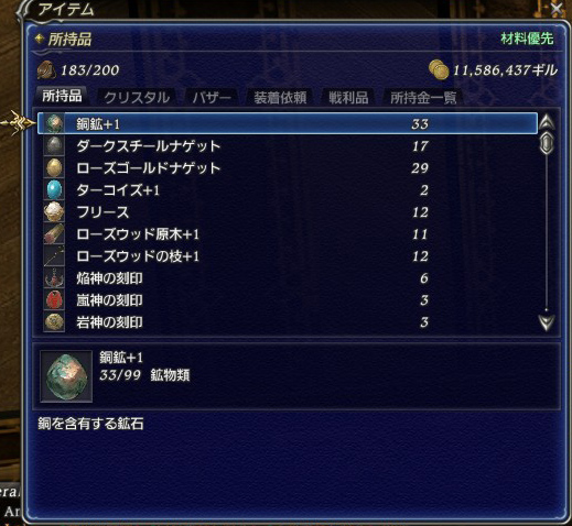 蛇足ですが、エンドコンテンツレベルの装備が5000~6500で交換できてしまうため、そちらの誘惑に負けて全然たまらないということもあります