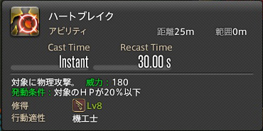 そして最後(?!)に、ハートブレイク、威力180、条件が対象HP20%以下、リキャストが30秒