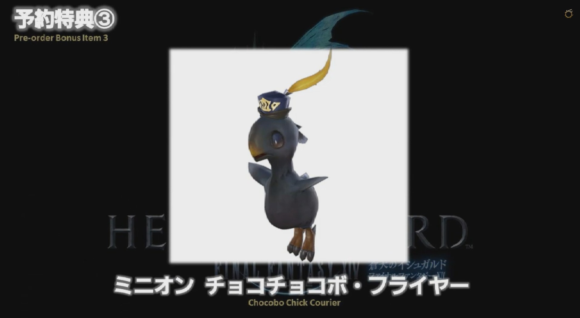 予約特典はコスプレ装備2つ(バロンサークレット/バロンイヤリング)とミニオン(ミニオン チョコチョコボ・フライヤー)ARRの時に味わったあのアーリーアクセス権の混乱が記憶によぎりますね…
