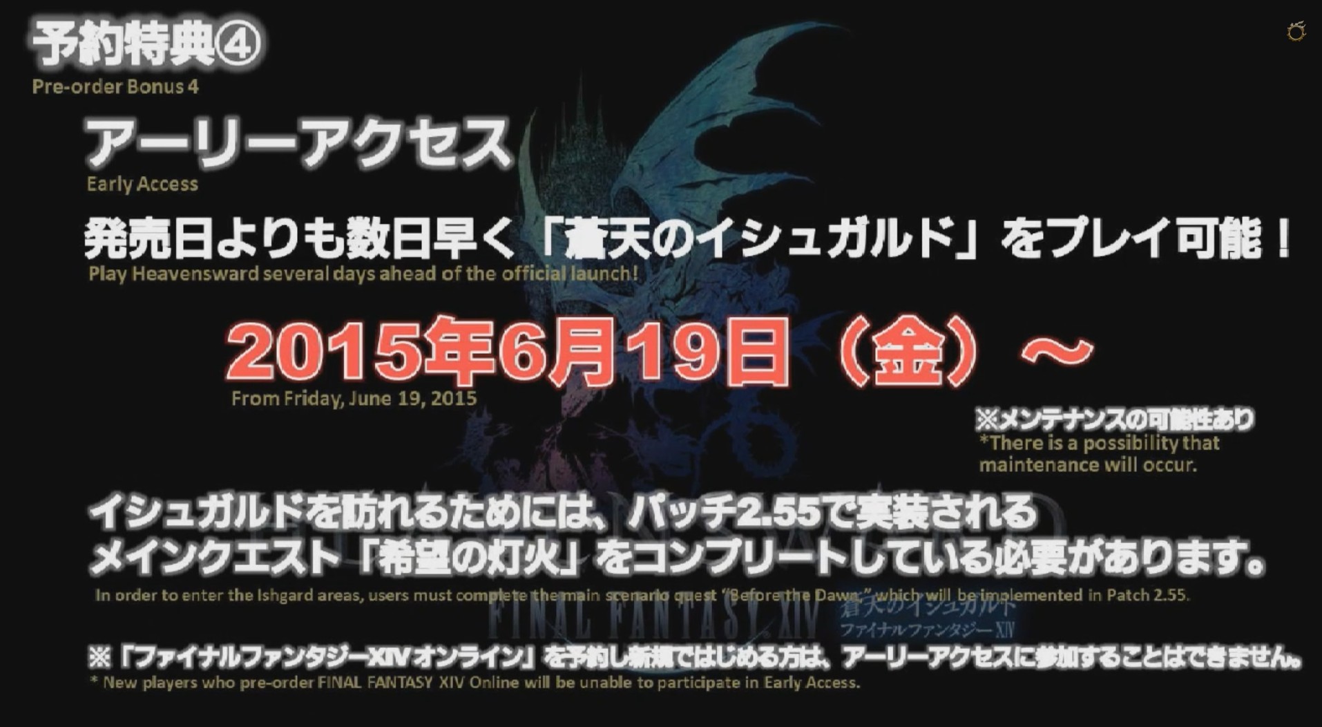 アーリーアクセス権は発売日の数日前から「蒼天のイシュガルド」の内容が楽しめる特典です