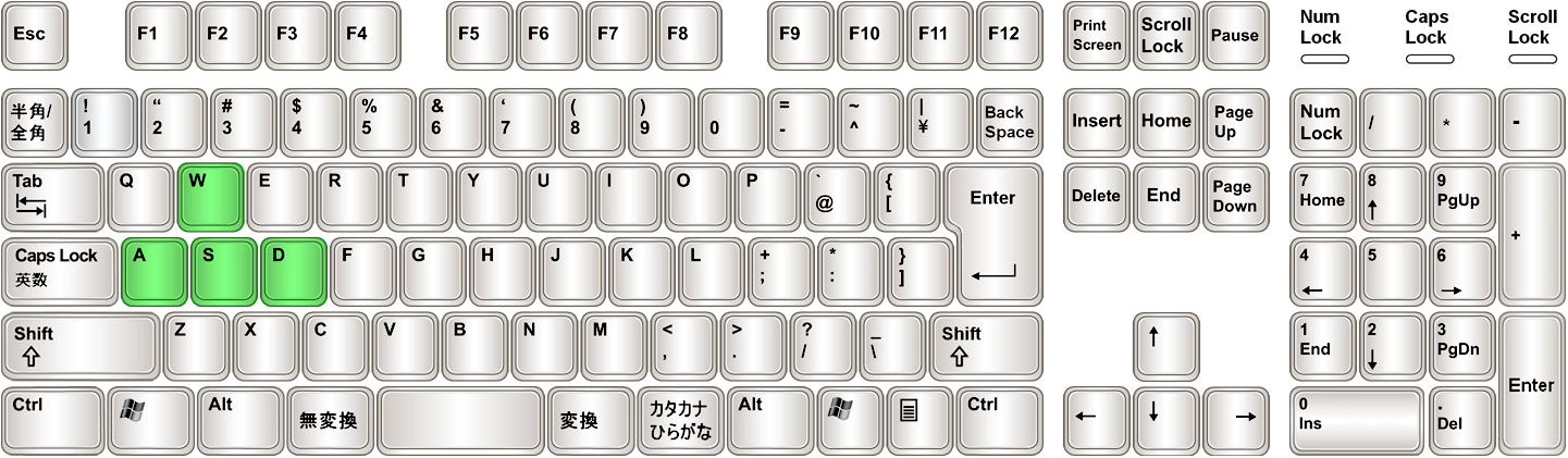 ■キーボード(レガシー)左手中指W画面奥へ移動(前進)