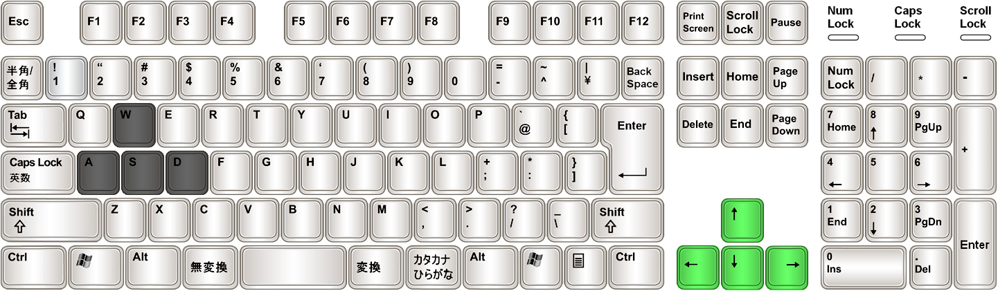 | キャラクター操作 | 前進 | W |