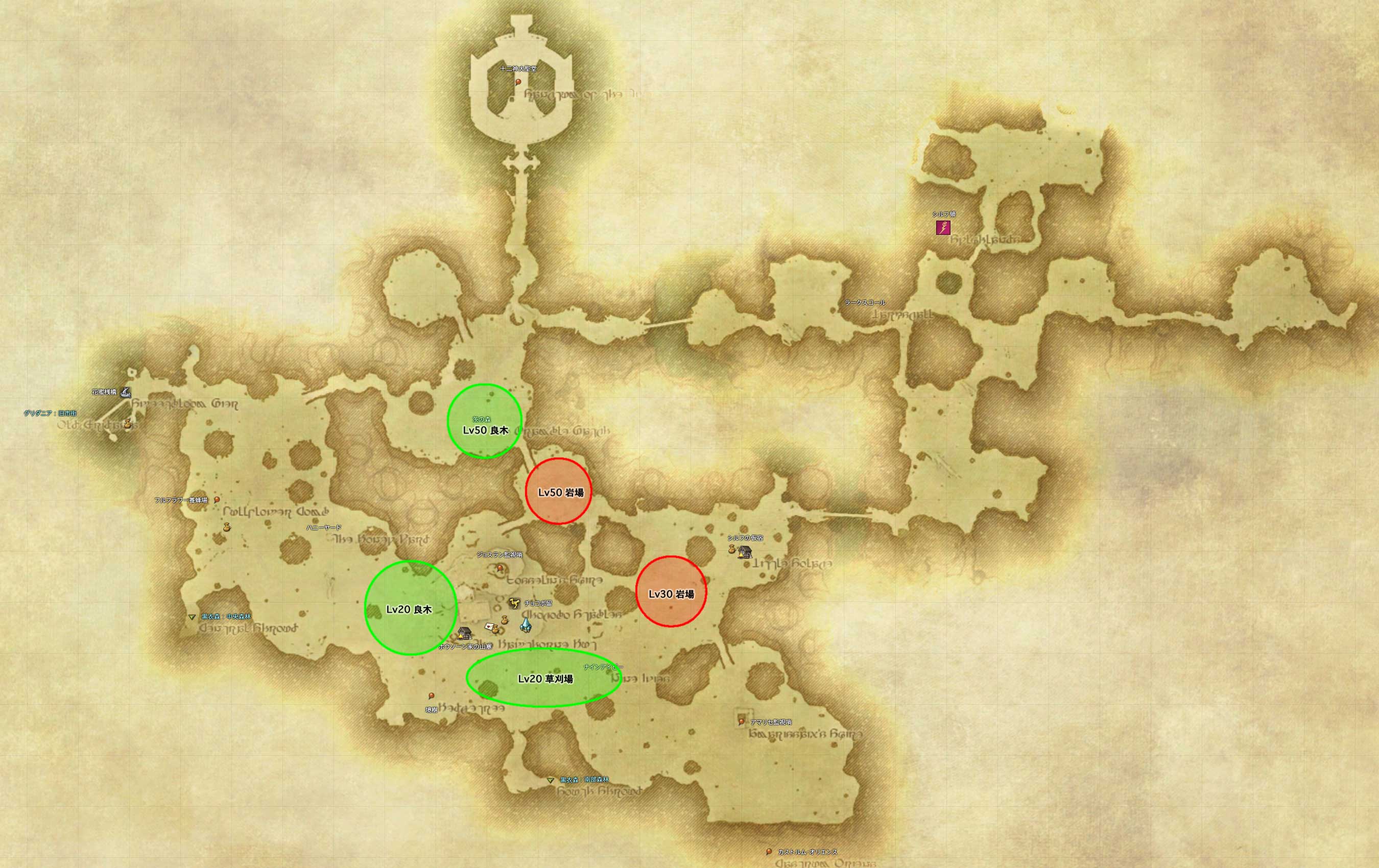 ※レシピ、ギャザラーマップ共にβ3現在の情報です。正式版では、ほぼ確実に変更が入るでしょう