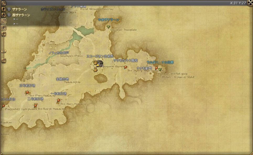 | ウルダハ | ゴブレットビュート | 西ザナラーン 金槌台地:ササモ八十階段付近 |