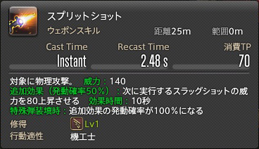 まず、スプリットショット、TPは70、威力は140