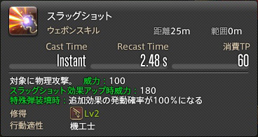 次に、スラッグショット、TPは60、威力は100、Proc時は180